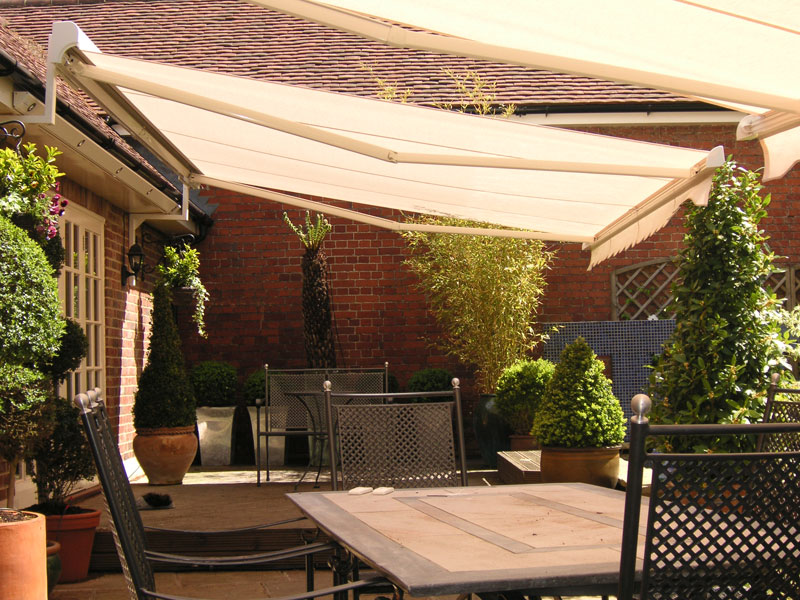 DUTCH CANOPY is made from a permanent fabric cover fitted over an aluminium framework, designed to shade your windows and doors with its distinctive quadrant shape. It is a very popular canopy type installed across the UK, and it can be often seen as a stylish decoration for shops, restaurants, hotels, balconies and many more. The Dutch canopy is truly versatile.To begin with, it comes in a wide array of colours, designs, styles and sizes, so that any commercial or residential client can find something for himself. It can be covered in various fabrics, from traditional and acrylic canvas to PVC coated textiles in order to provide maximum sun and rain protection.